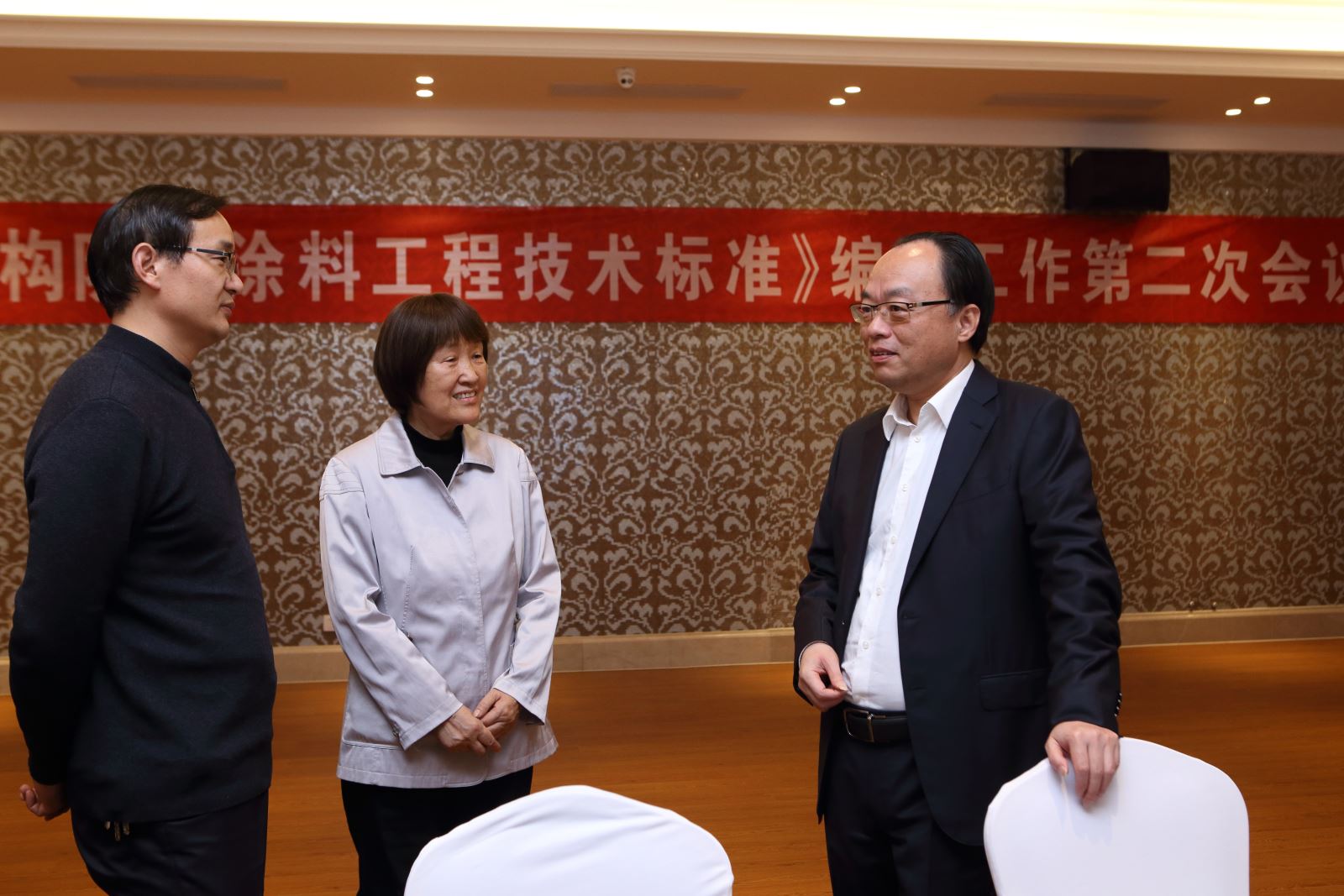 集团公司涂料生产副总工程师陈建刚与芦天站长讨论标准初稿