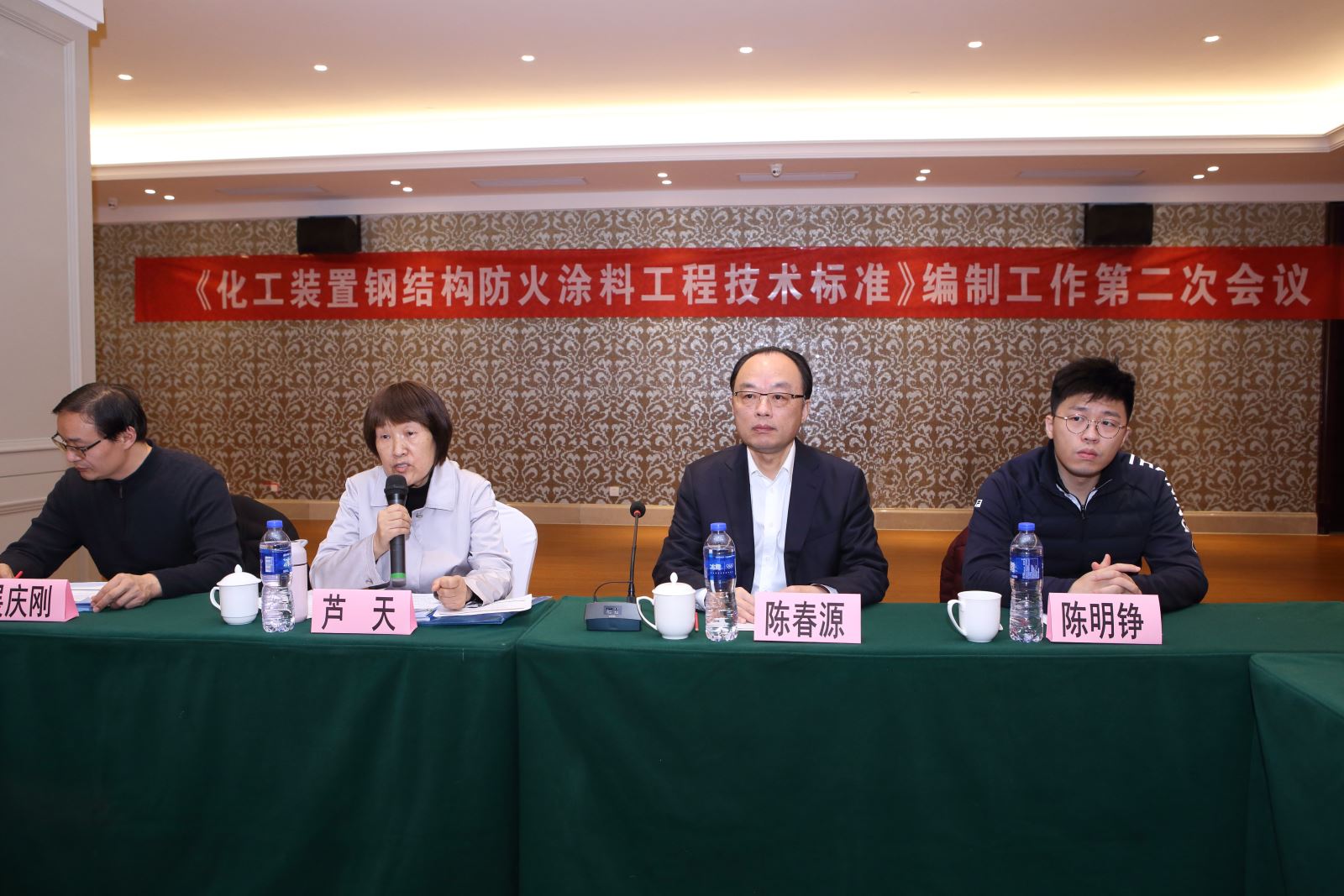 两天的会议由全国化工施工标准化管理中心站站长、团体标准编制组组长芦天主持,在第一天会议上,她严谨地提出了标准初稿讨论的具体要求和编制中应注意的事项。随后,集团公司董事长总经理陈春源代表本次会议承办方致辞,他向与会领导和专家简要介绍了我们开元网页版登录入口的基本情况,并表示非常希望通过这次会议,能够和“中国石油和化工勘察设计协会”及“全国化工施工标准化管理中心站”建立长期良好的沟通、交流和互动机制,以便更好地深耕钢结构防火涂装保护这一重大板块市场,提供更加先进的产品和优质的服务,从而进一步推动我国防火涂料工程技术的进步,为崇高的防火保护事业作出新的更大贡献。会上,中国五环工程有限公司陈京副组长、中国化学工程第三建设有限公司展庆刚副组长、浙江美阳国际工程有限公司肖鹏副组长代表主编单位相继发言。